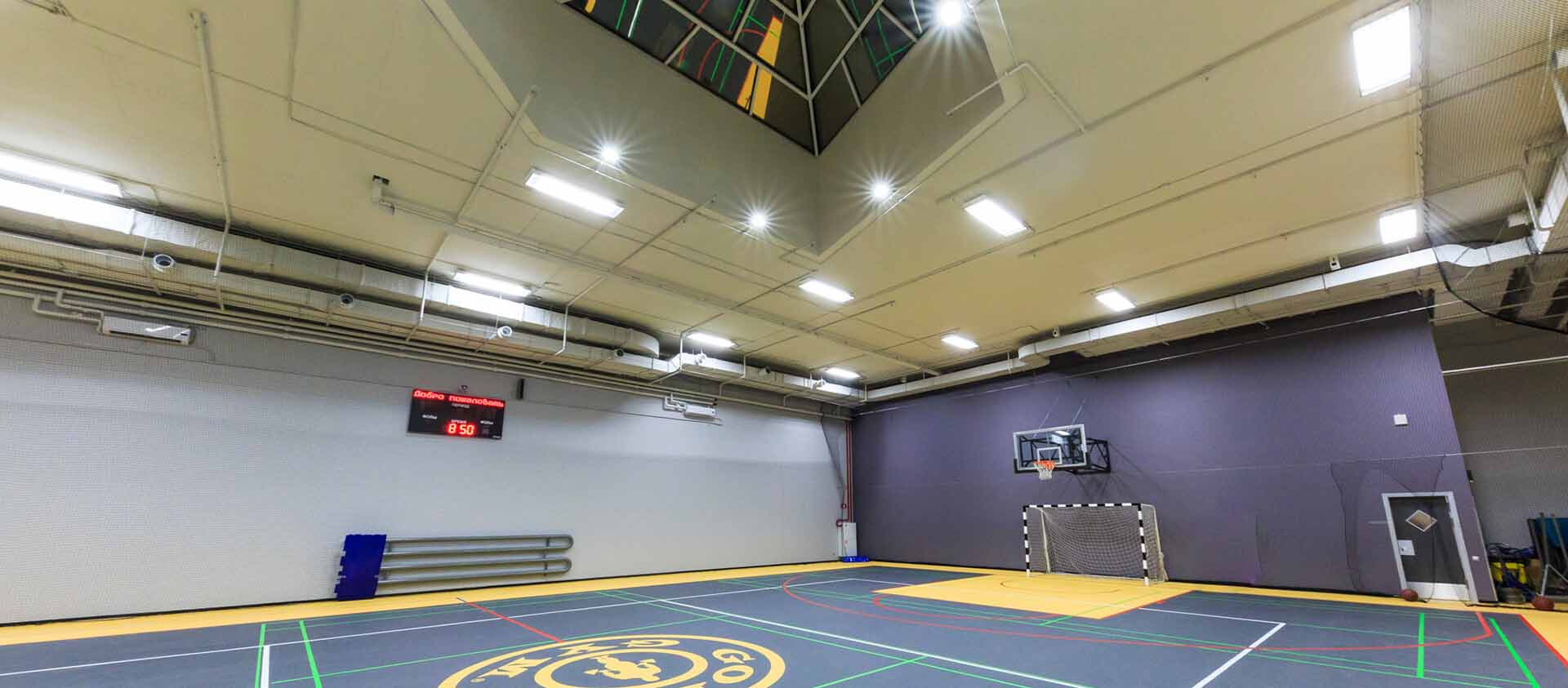Многофункциональное покрытие для игр в мини-футбол, баскетбол, волейбол, настольный теннис и бадминтон.